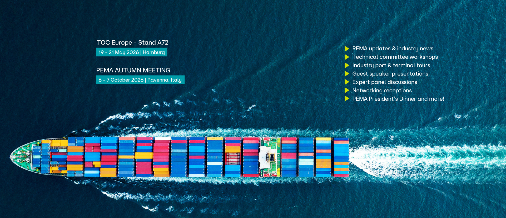By joining PEMA, you gain access to a unique forum for exchanging views on emerging trends and demands for port equipment and technology, including the chance to meet and build relations with industry colleagues at formal and informal gatherings.